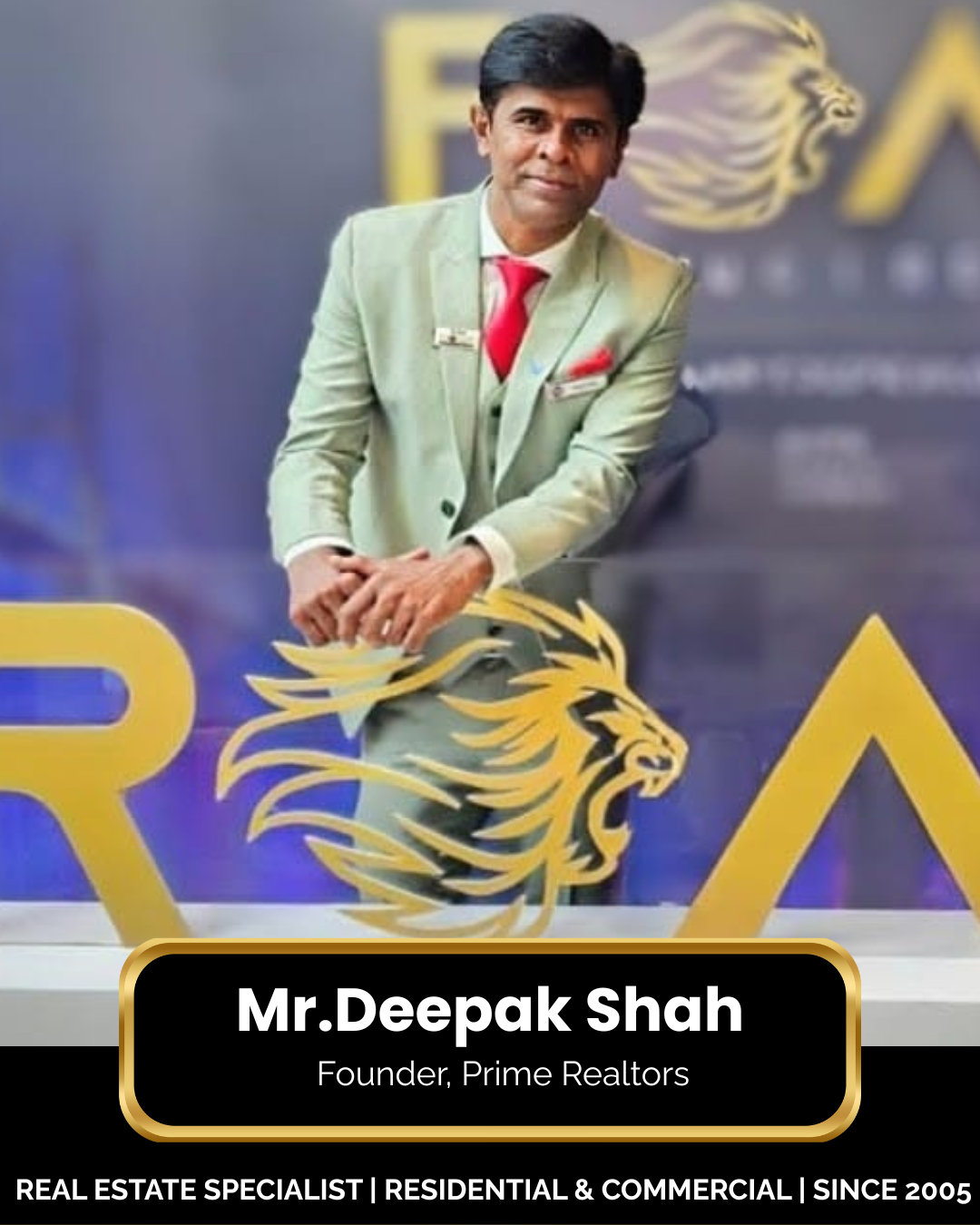 Born and raised in Mumbai, Deepak Shah is a graduate in Commerce from the prestigious K.C. College, Churchgate. He began his career as a Sales Executive with Ami Suzi Estate Consultants in Mahavir Nagar, Kandivali West, where he gained valuable grassroots experience in real estate.
